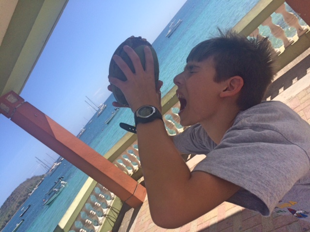 Kids had fun finding coconuts and trying to get them opened to drink the coconut juice.