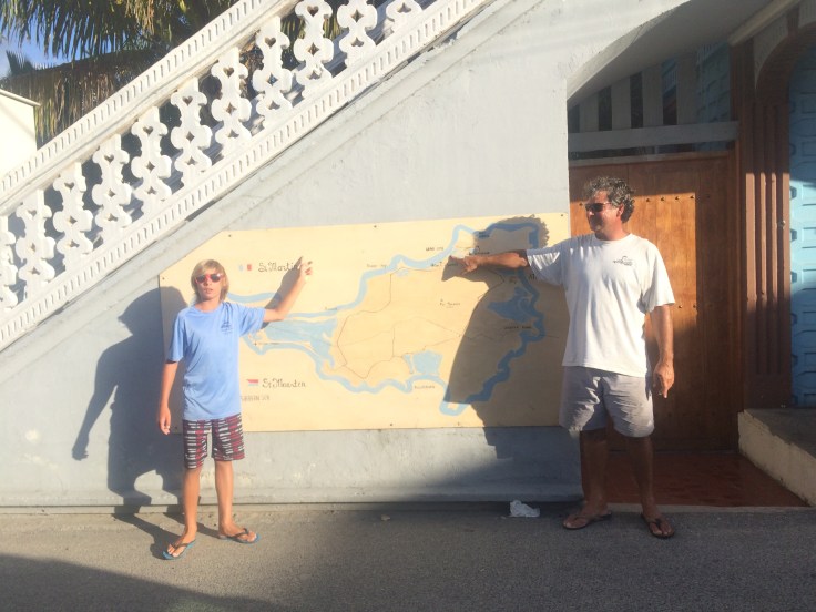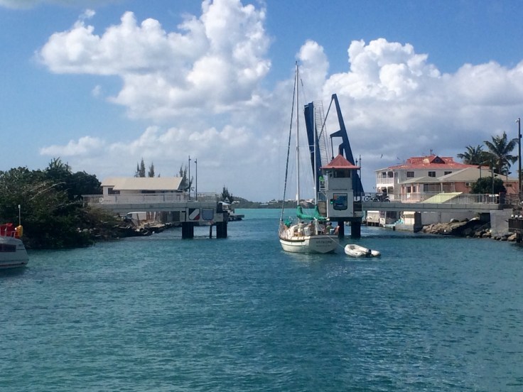 From the lagoon, Grand Case is a short 3 mile sail along the North West Coast of St. Martin. We left the Lagoon through the Sandy Ground (French side) afternoon bridge opening. This bridge is only 29′ wide, but Tyler maneuvered 24′ wide Sail Pending through like a professional Captain!!! Here is a short video. Tyler driving through Marigot Bridge