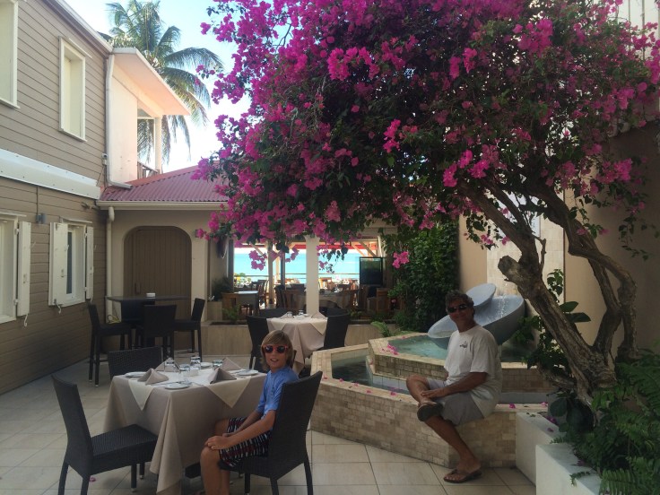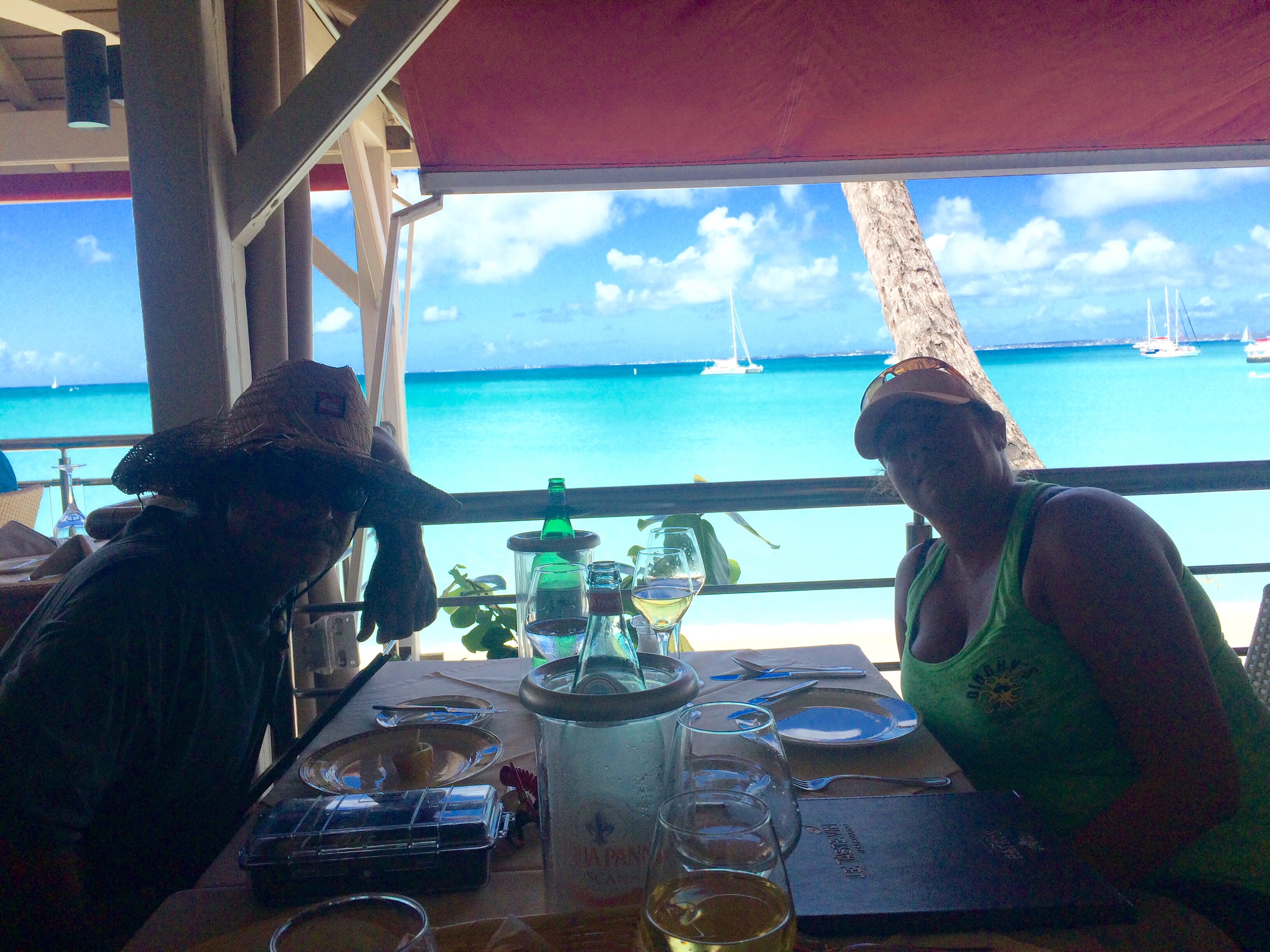 Grand Case is considered the gastronomic center of St. Martin. The Main Street is lined with any thing you could want, from cute little Bar-B-Que places with picnic tables, to beach bars, to 5 star French Restaraunts with linen table cloths and fine china. So, we decided to splurge and have Lunch at one of the fancy places.