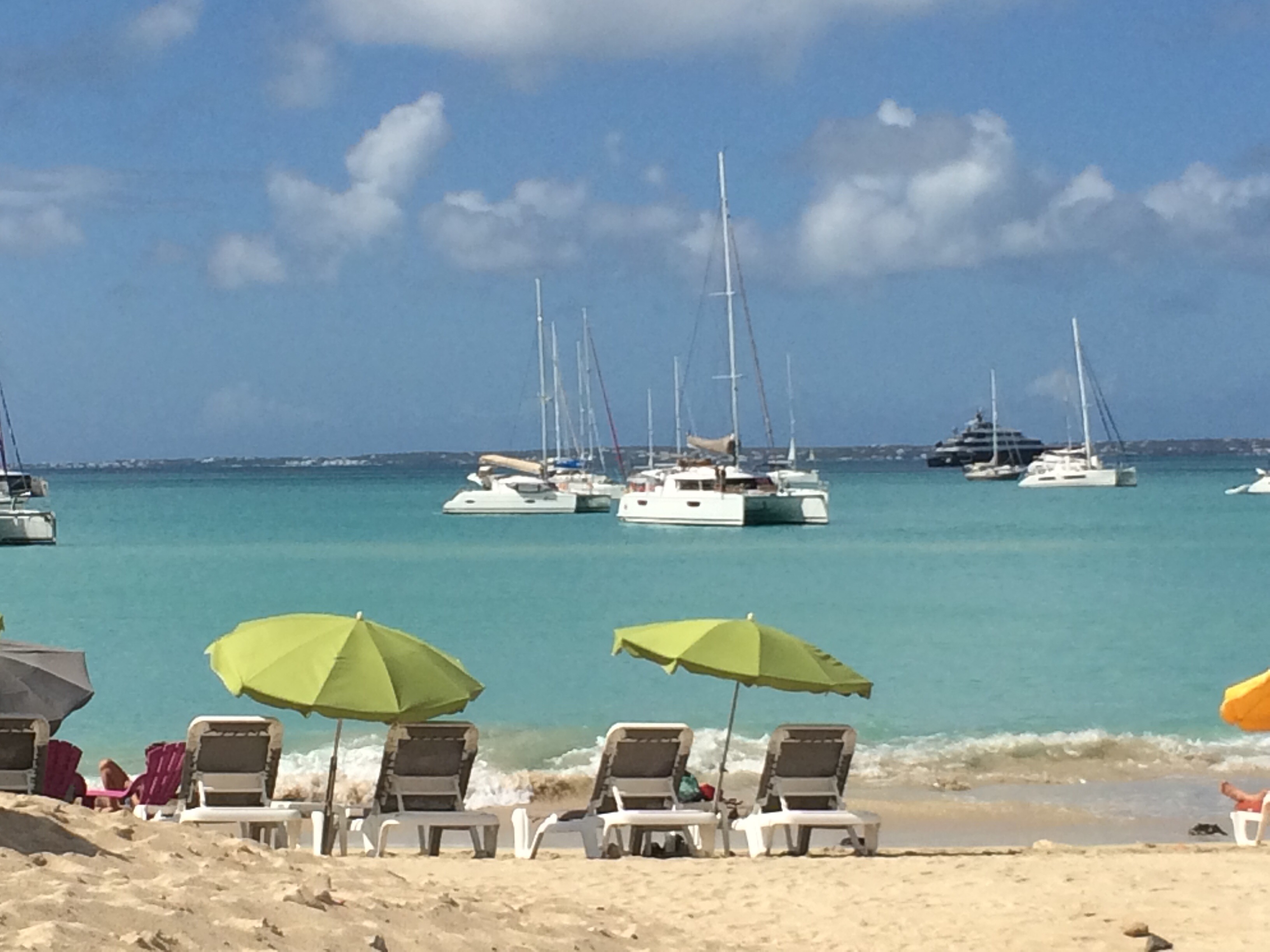 The beach at Grand Case is absolutely beautiful!! The island you see in the back ground is Anguilla. The anchorage and dingy dock can get rolley since it’s a northern bay, but everything that the town has to offer makes the rolley night worth it.