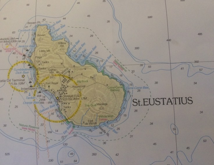 After a 30 mile, very wet and bumpy, sail we arrived at St. Eustatius which is also know as Statia. It’s a small volcanic island that rises from the ocean almost straight up to 1800′. The island has about 3400 residence.