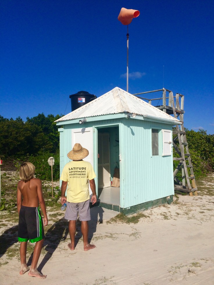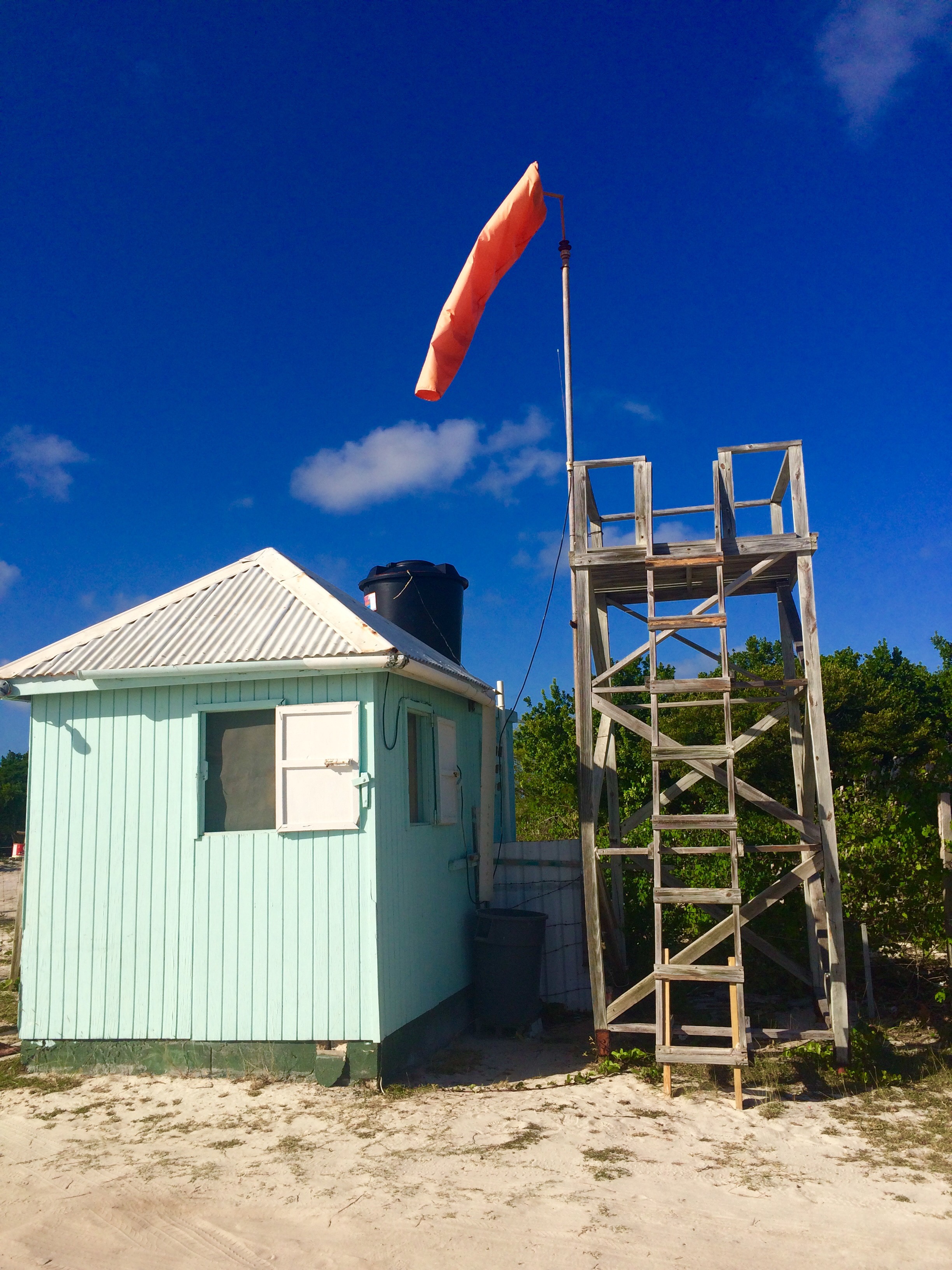 So, we had to move our dingy farther up the beach away from the resort and we walked along the beach some more and stumbled upon this blue building, which is the security guard for the private airport.