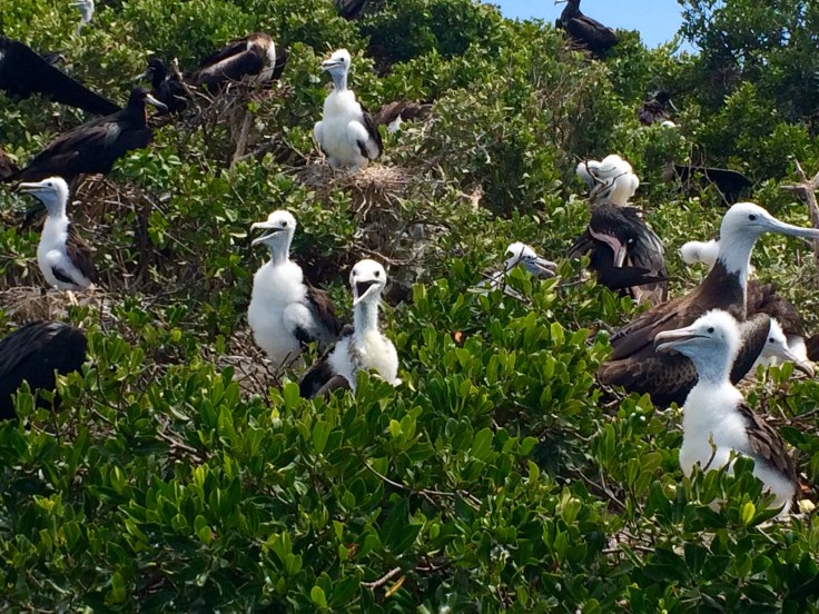 We hired a local tour guide to take us to the Frigate Bird colony in the Codrington Lagoon. There were 1000’s of these magnificent birds.