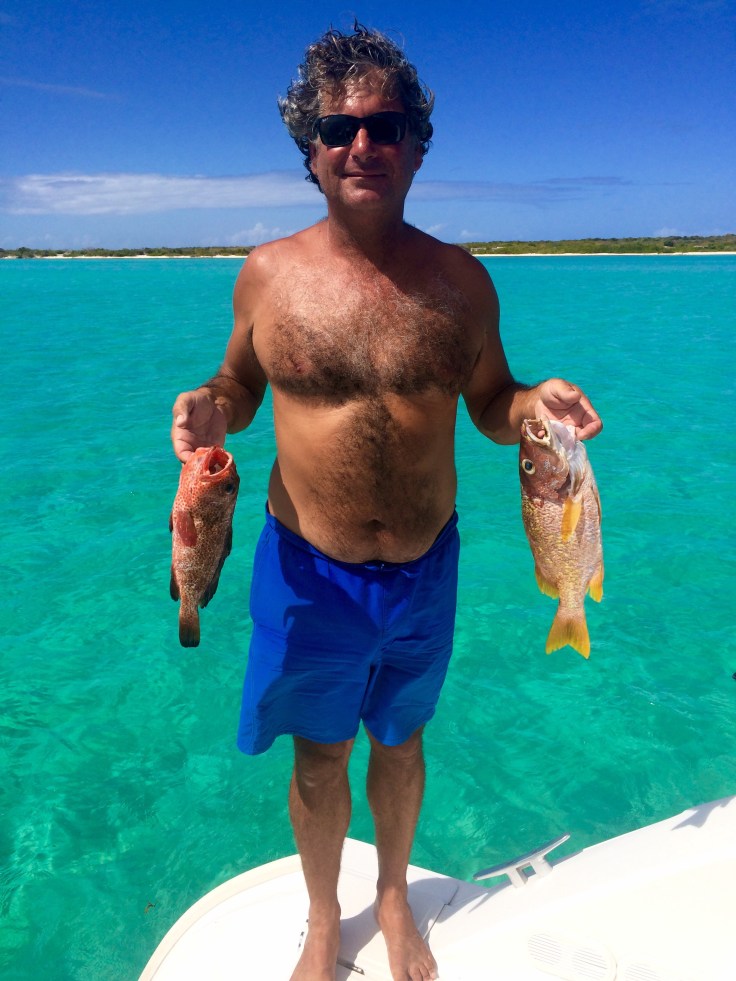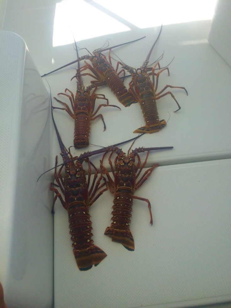 Our first day in Barbuda the Security Guard at the airport told us about a dock that was near here where the fishermen brought their Lobsters to sell. So, as soon as we anchored Rich headed to the dock. He came back with 2 Lobster, a Grouper and a Snapper all for $100EC or $40.00 USD