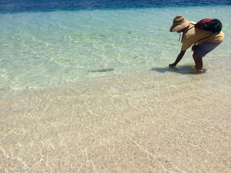 In the photo below, Tyler is actually standing near a 15′ cliff. This shows you how clear the water is.