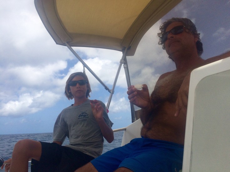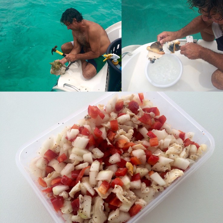 If we are in a place that has a grassy bottom and we are allowed to take conch we will get a few conch and make a refreshing cold conch salad.