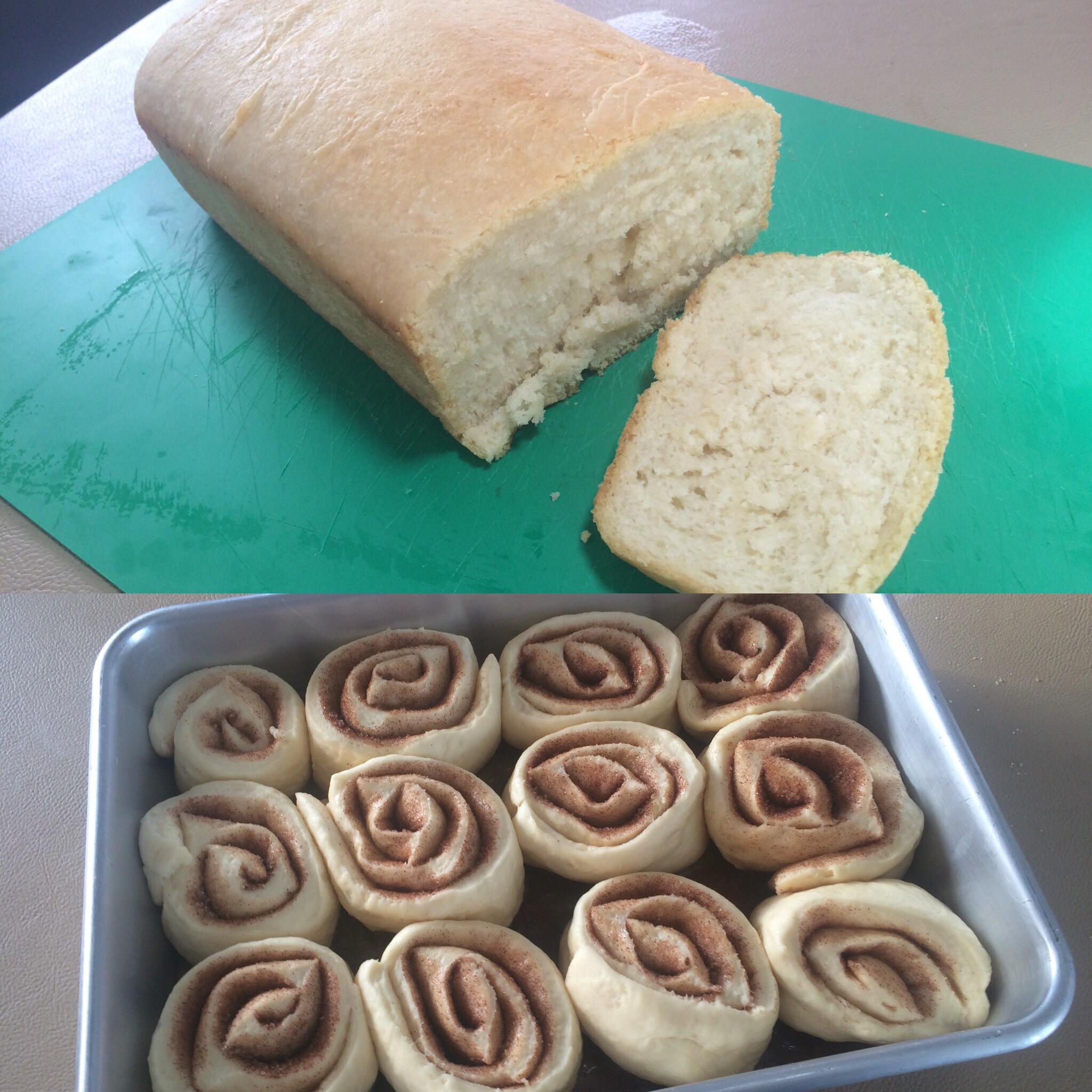 I end up cooking and baking a lot more than I did at home. I bake home made bread and cinnamon rolls.
