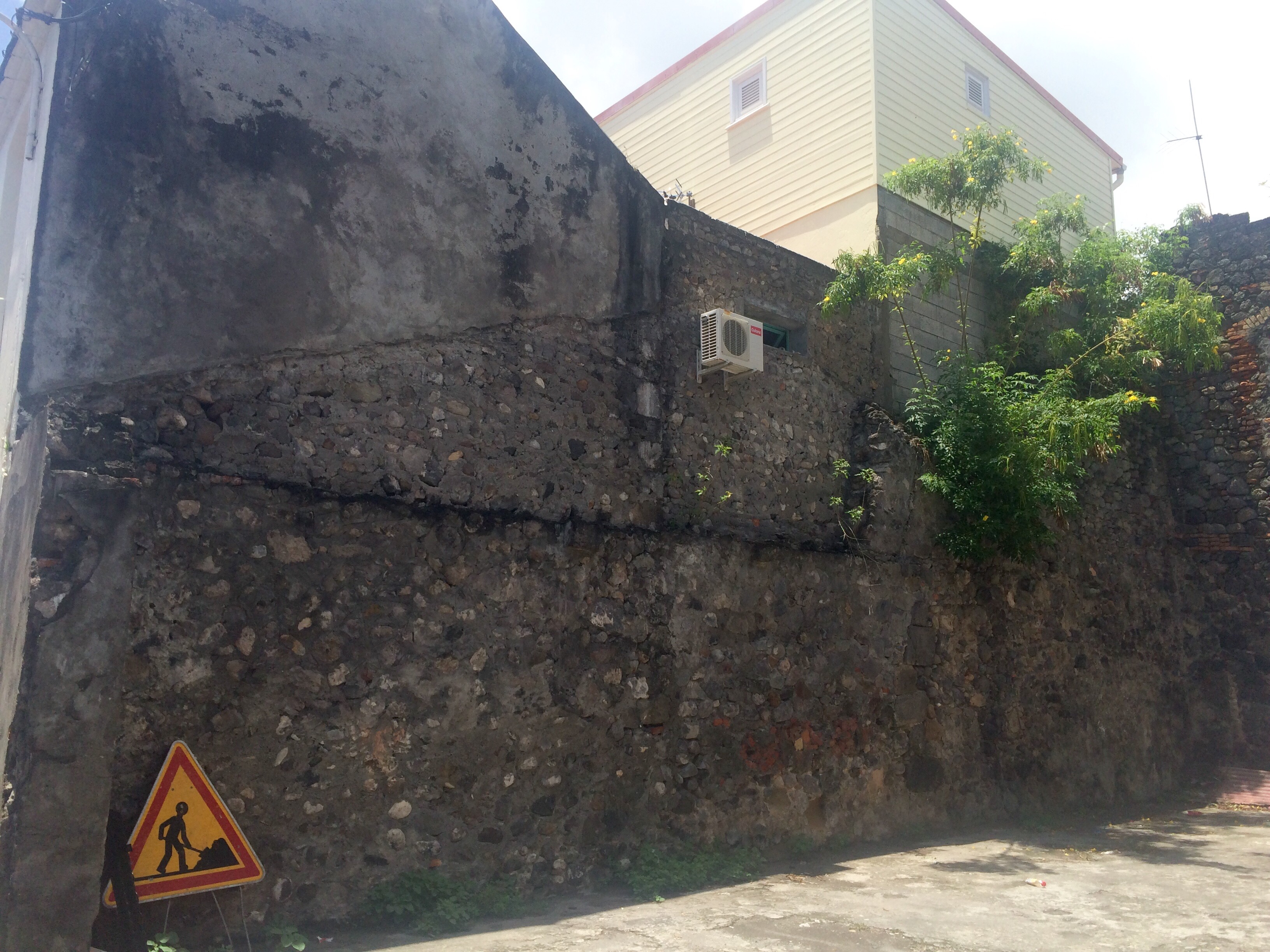 Most of the current buildings have at least one wall that survived the volcano.
