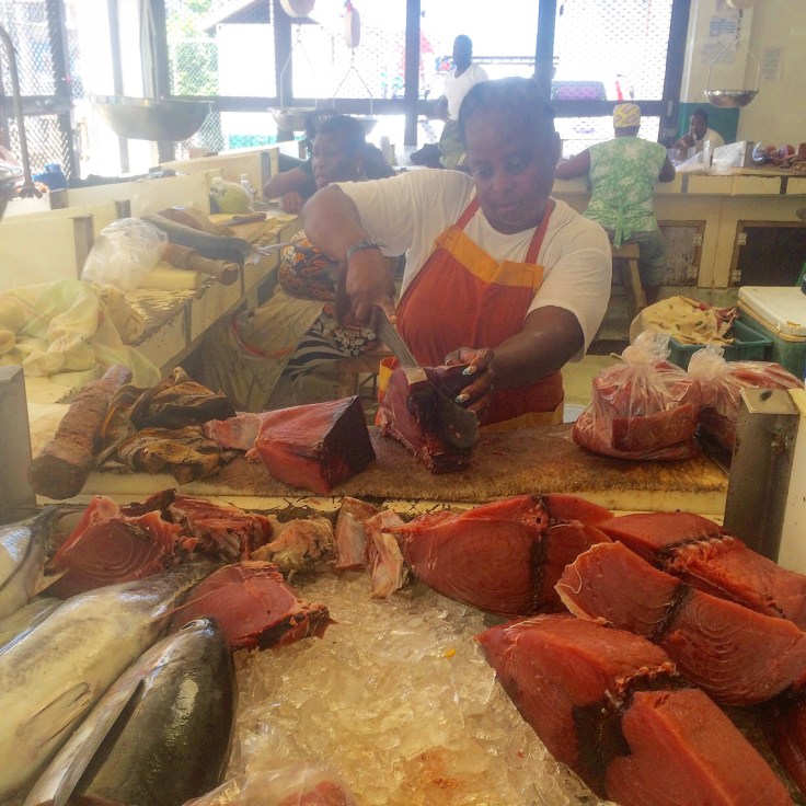 At the St. George’s Fish Market in Grenada there is always fresh tuna for $7.50EC a pound ($3.00 USD). So, we have been eating a lot Tuna in Grenada.