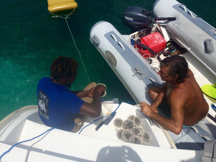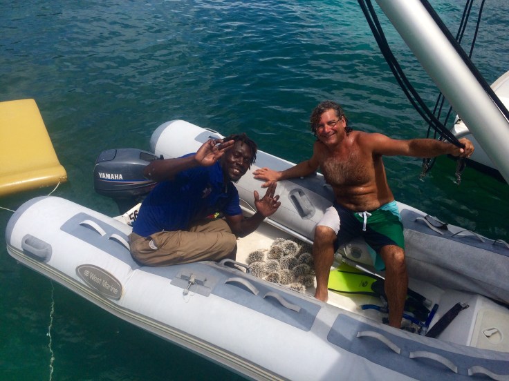 If we see the locals eating something we’ve never seen before we ask about it and ask how to prepare it. Here is Philip, from Myreau Island teaching us how to clean and prepare Sea Urchin, also known as Sea Eggs.