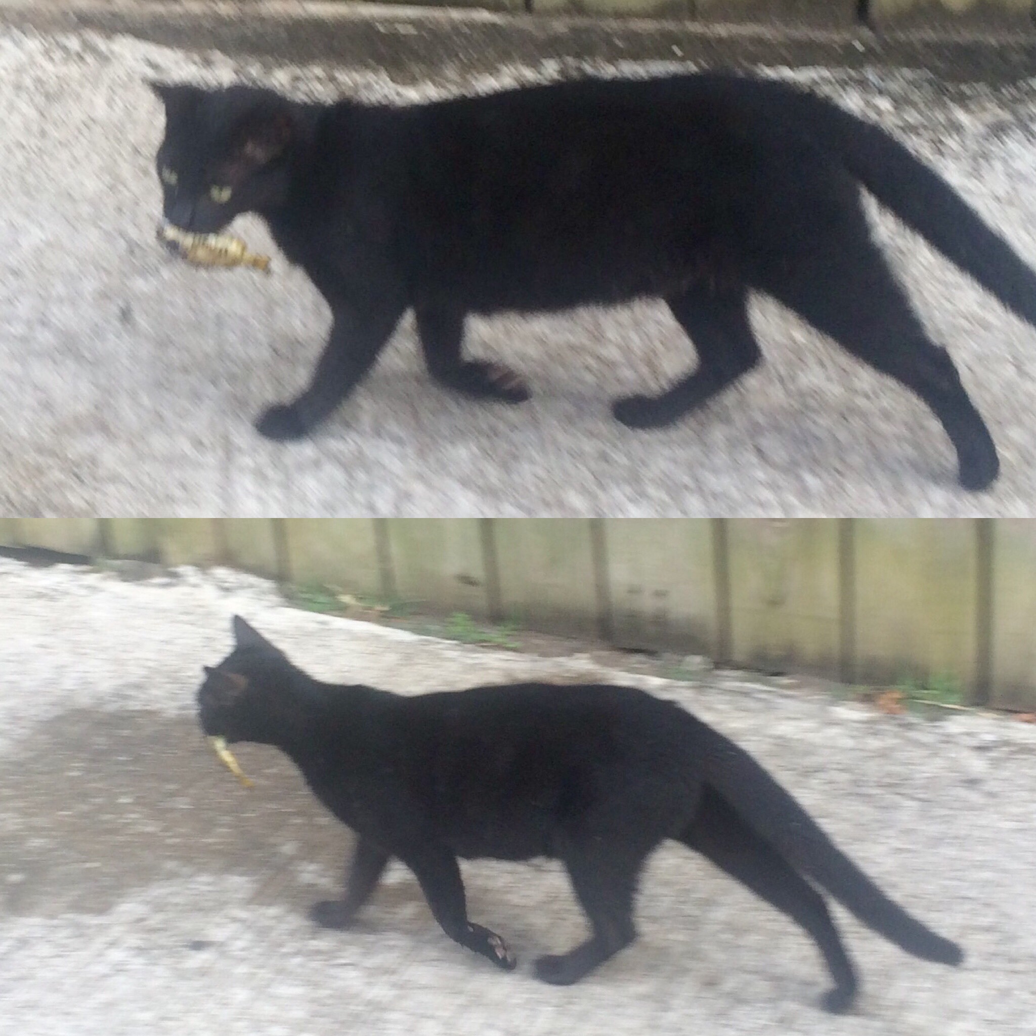 A cat with a fish in it mouth. The cat reminded us of our little Cessna.