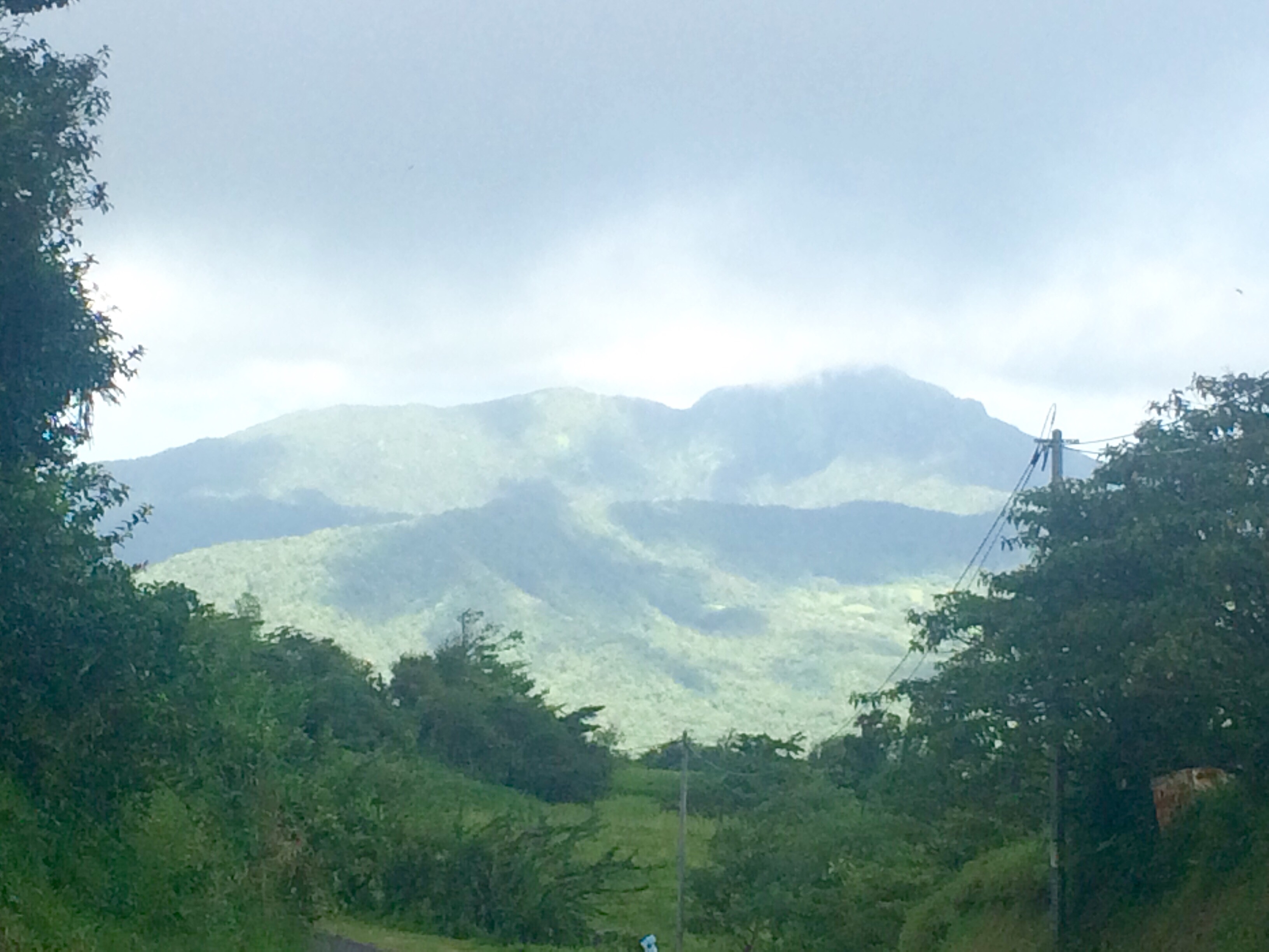Then we headed inland towards Mount Pelee that volcano that destroyed St. Pierre.  Notice we are up in the clouds and a view of the sea below.