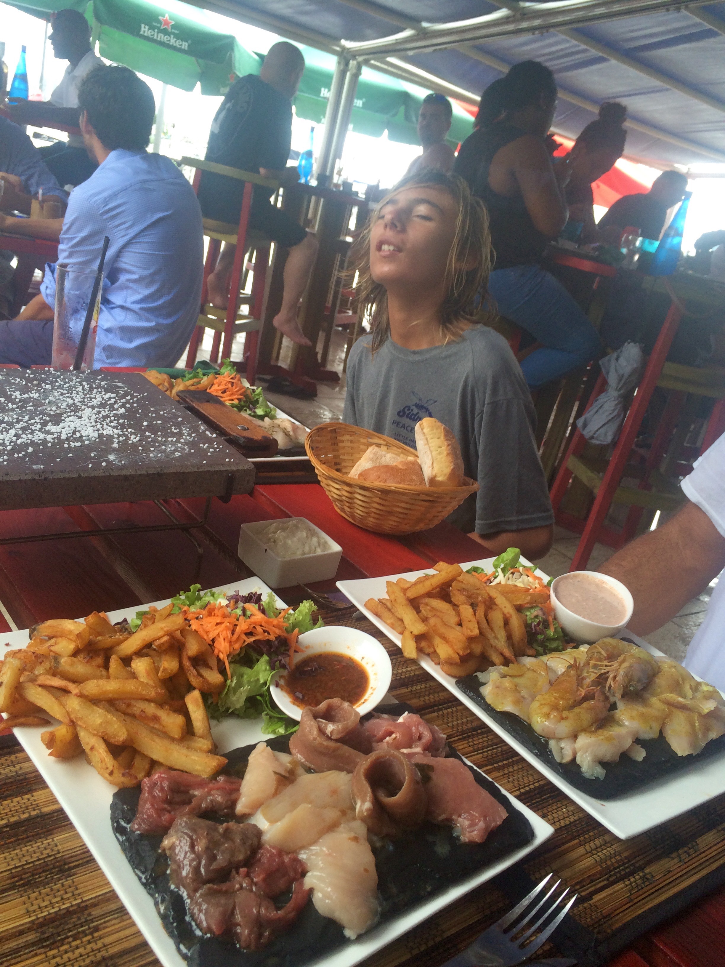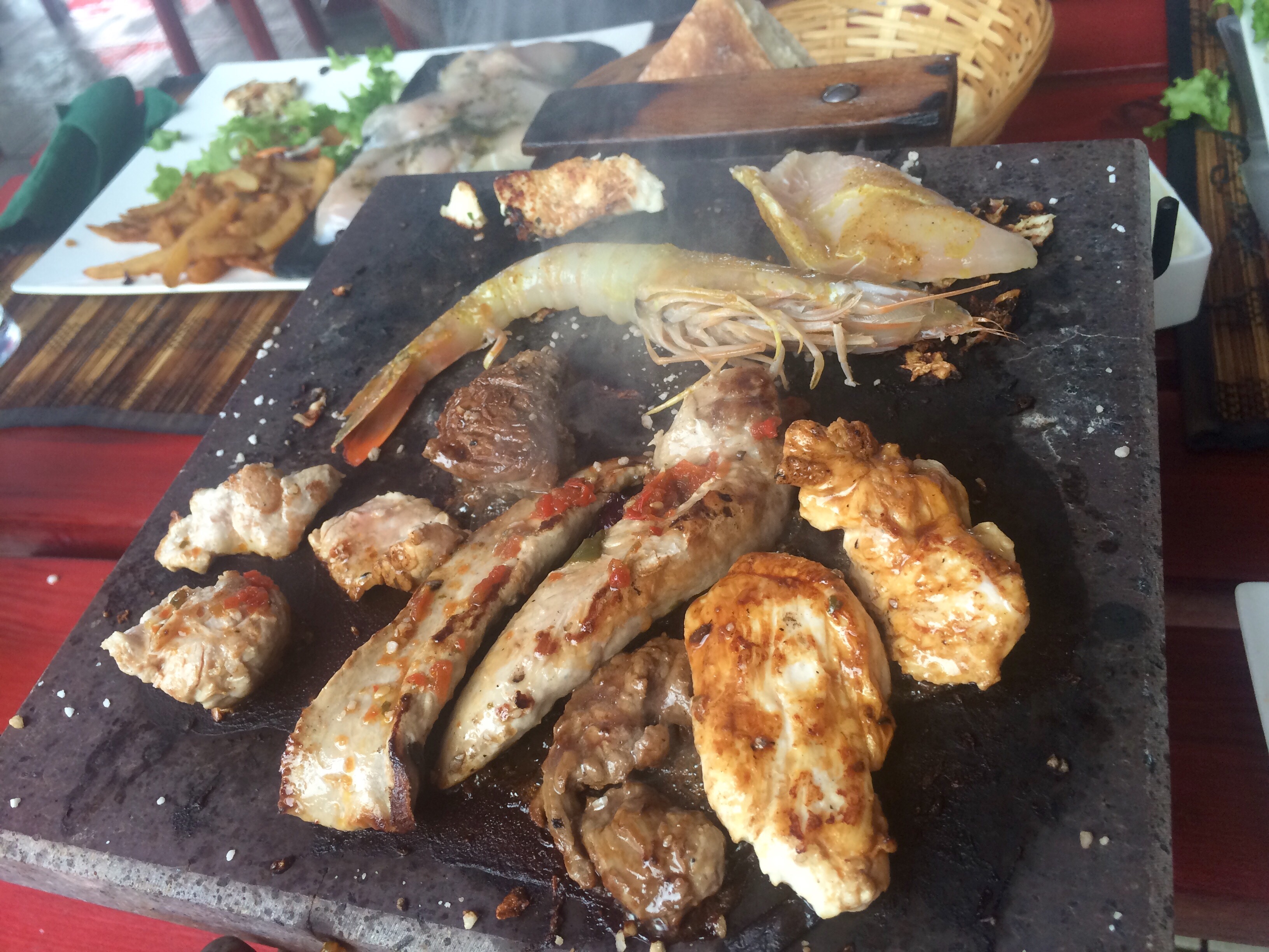 The larger town of Marin was about a 2 mile dingy ride. We would go in there and get boat parts and we ate out at a fun Restaraunt where you cook your meat at the table.