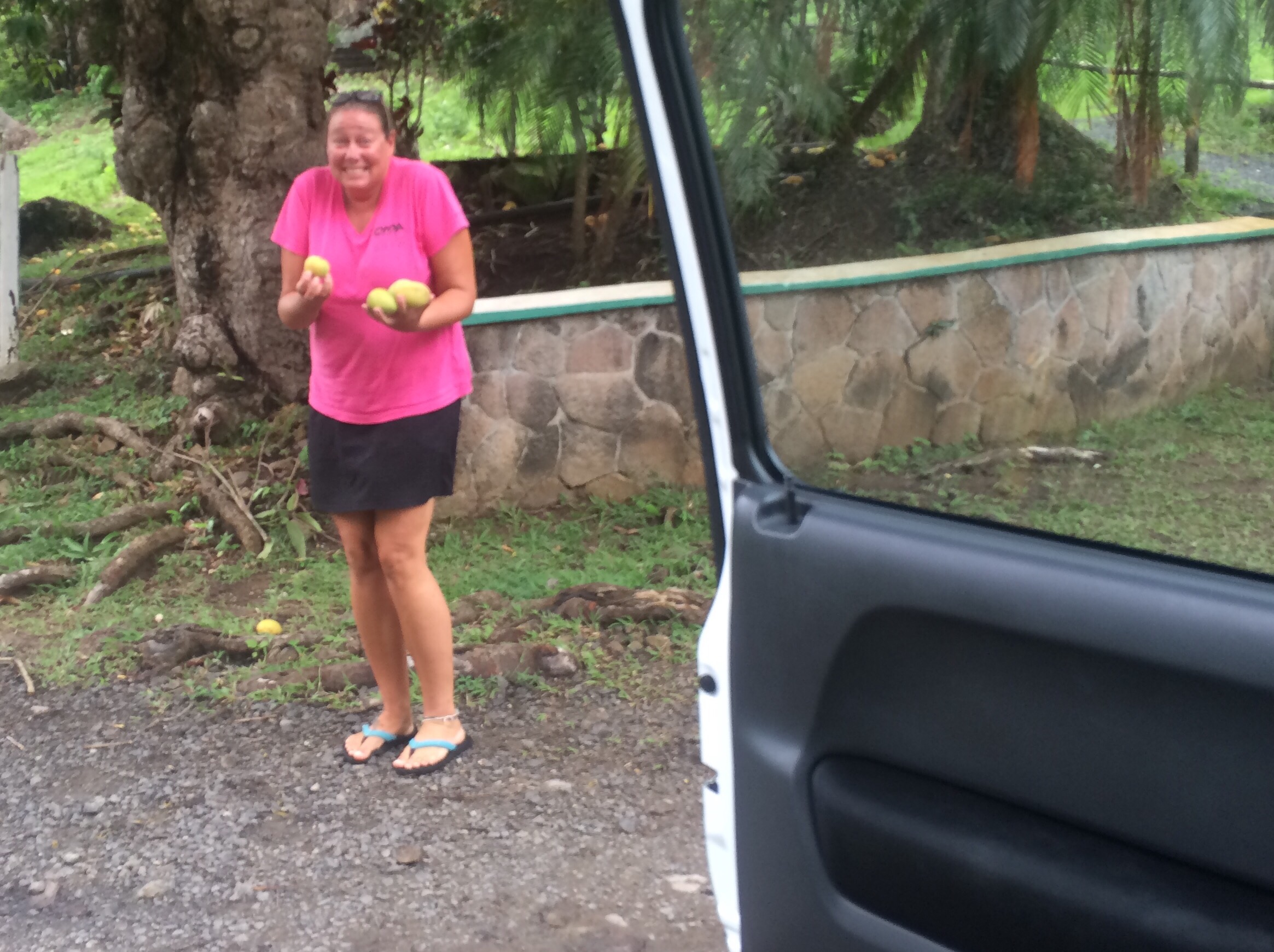 Me picking up some fresh mango’s from the side of the road.
