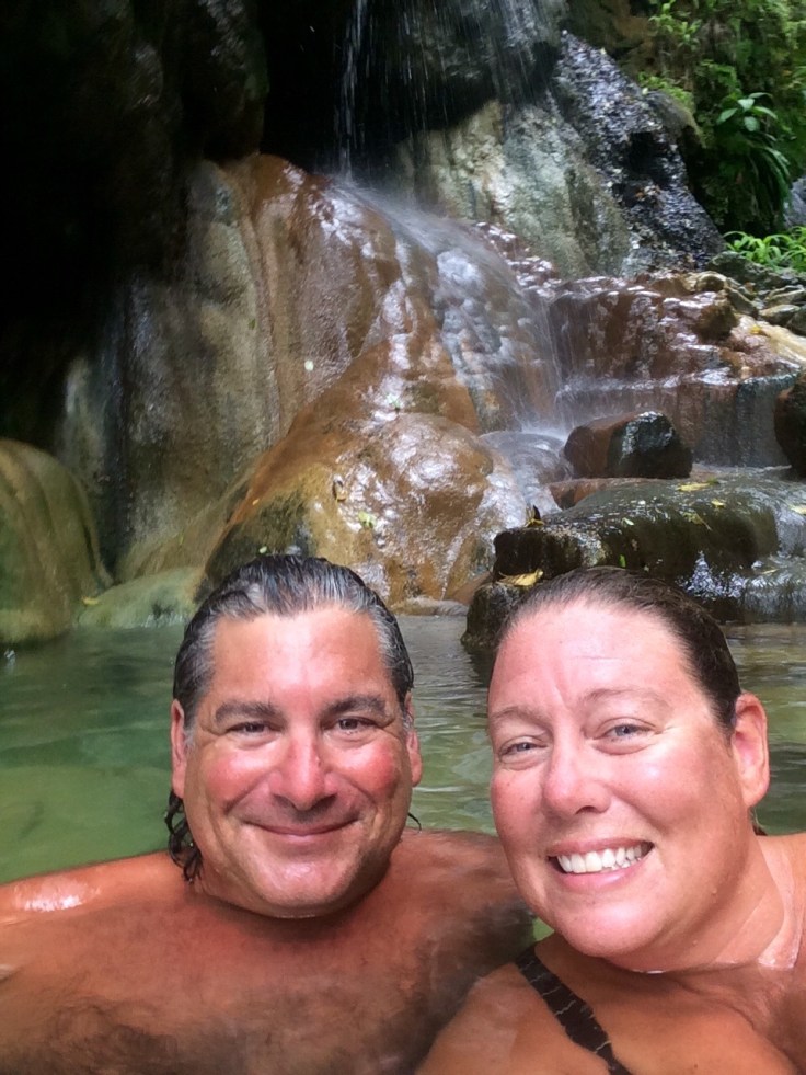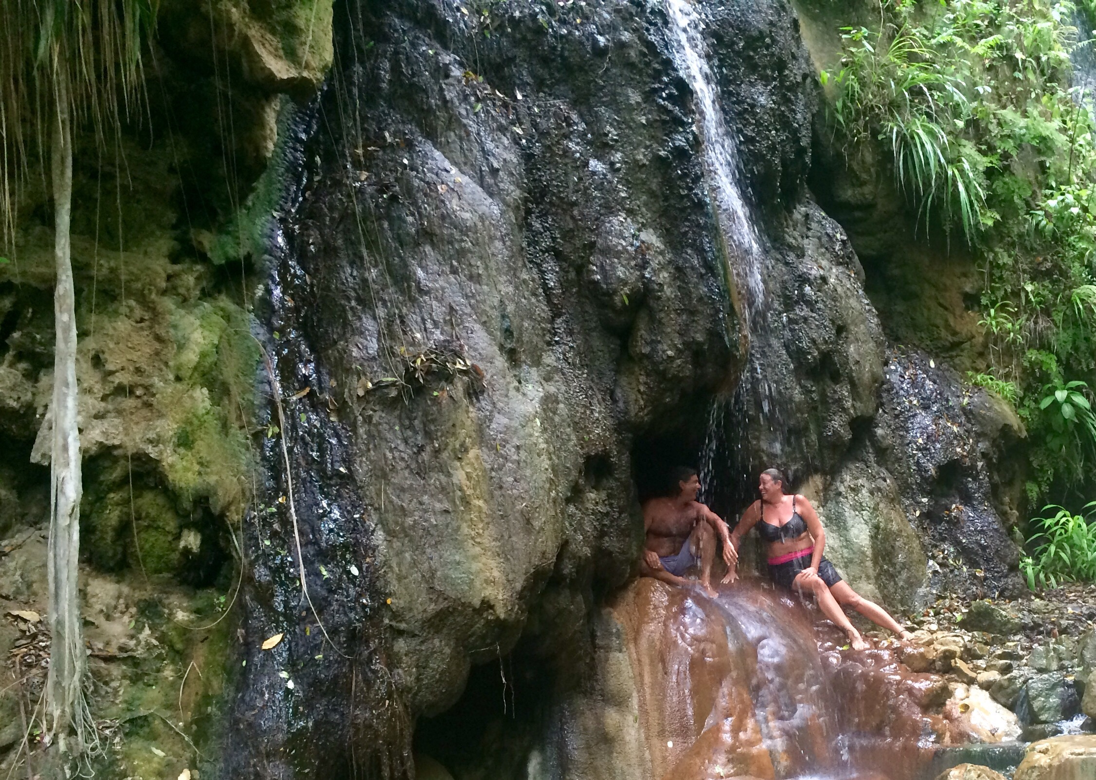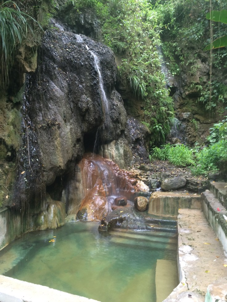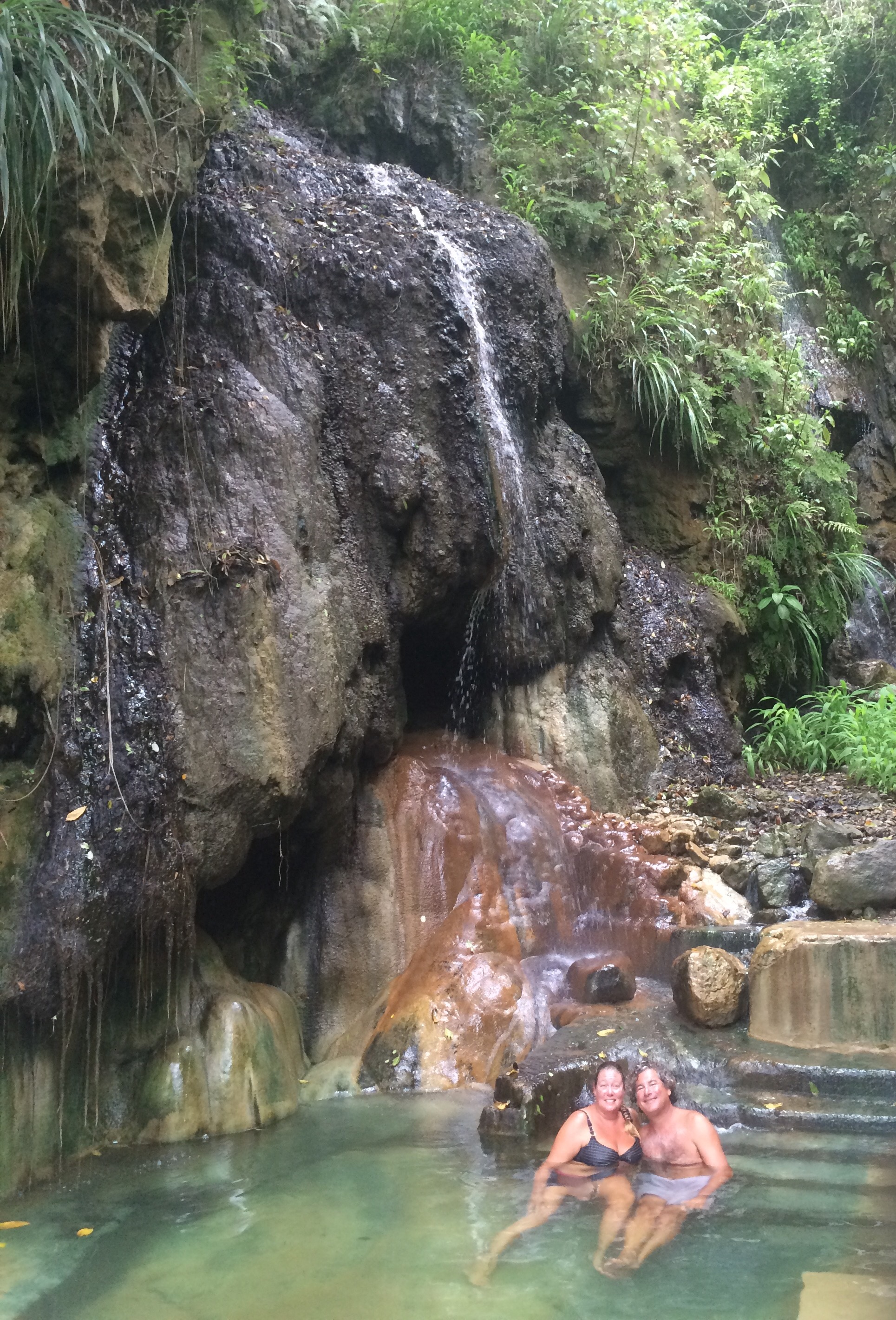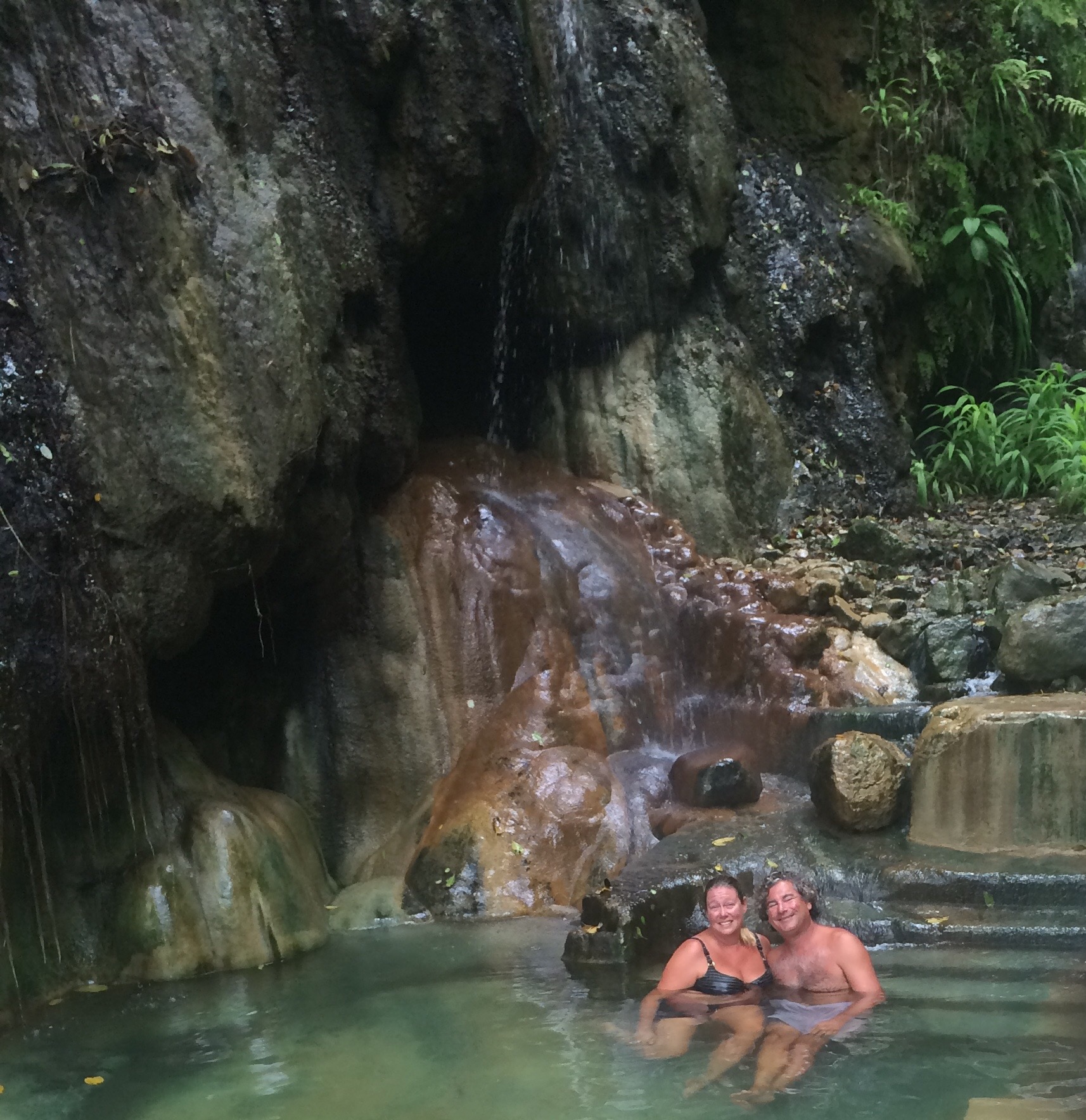 The water in this hot tub is full of minerals and is warmed by the volcano. The locals tell us it will make our skin look 10 years younger…..
