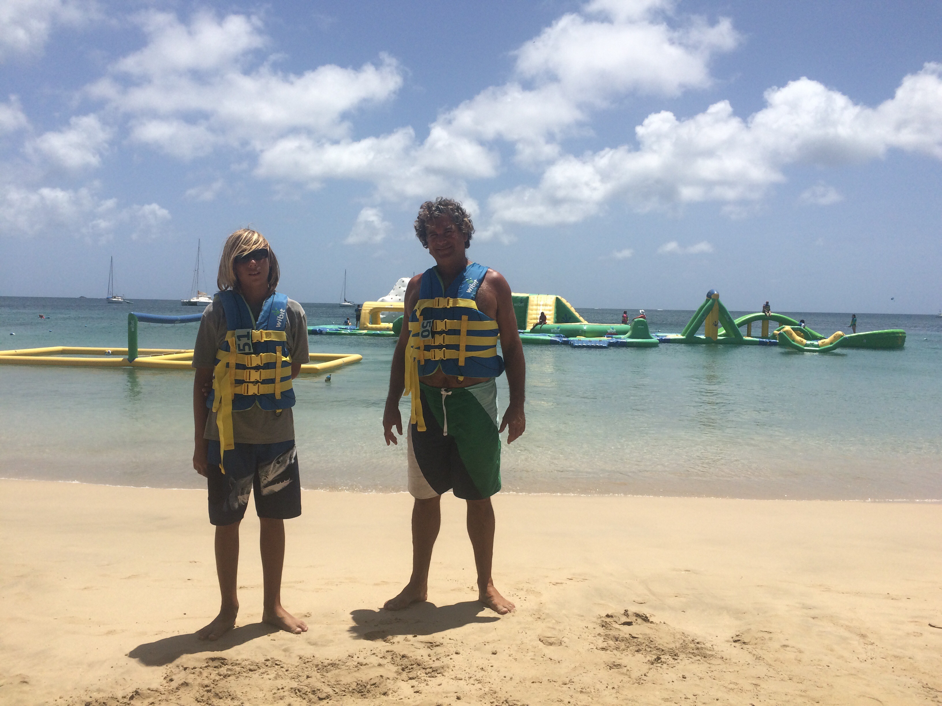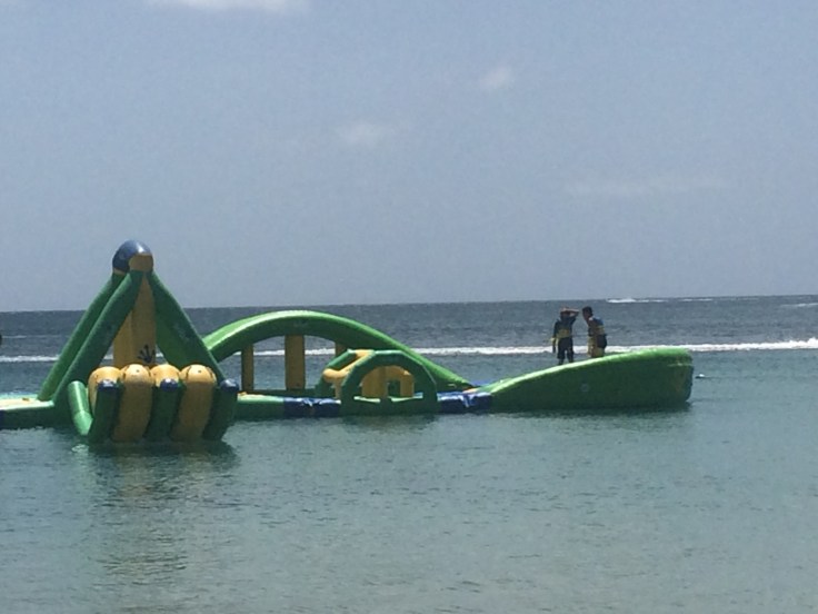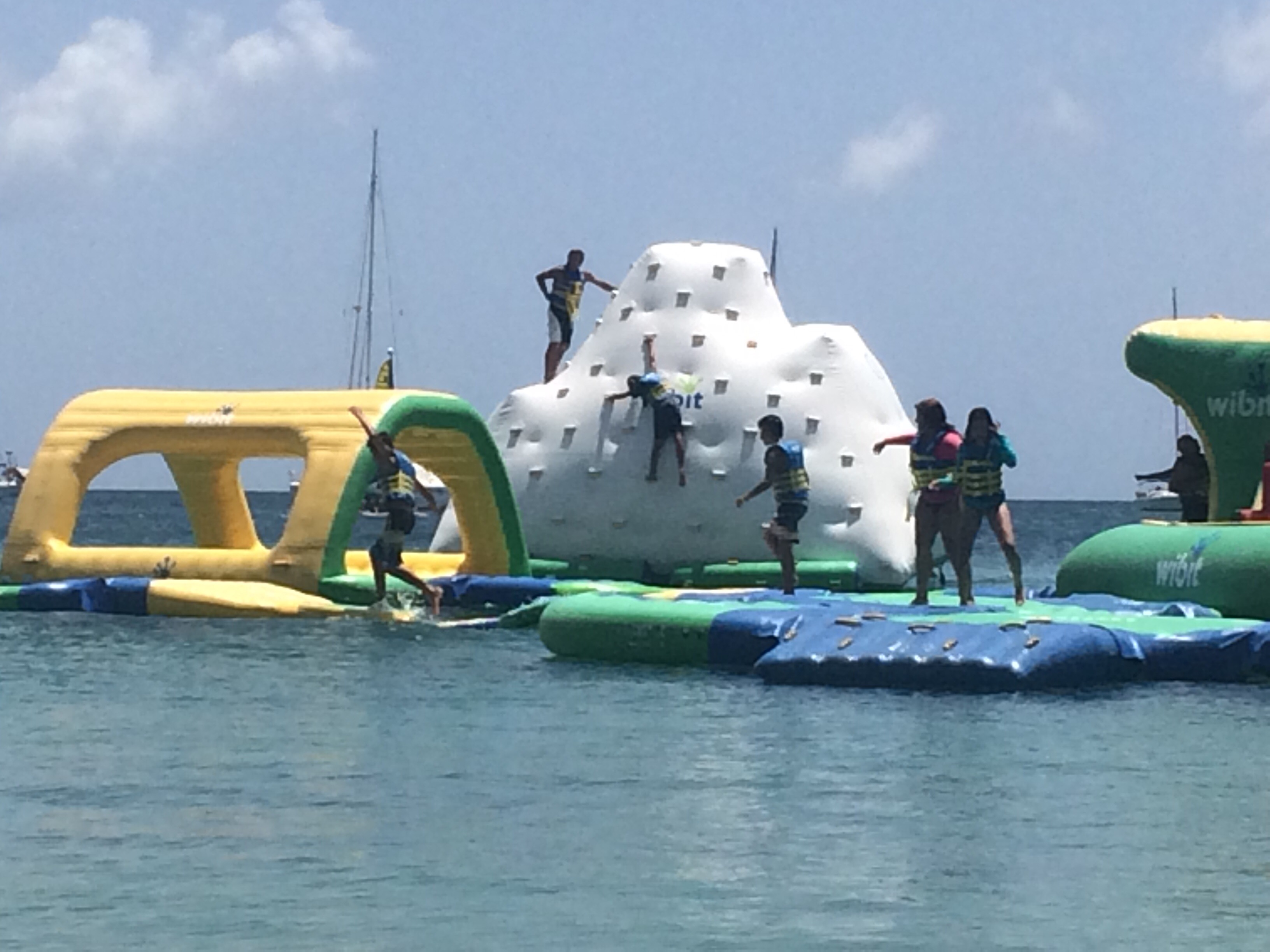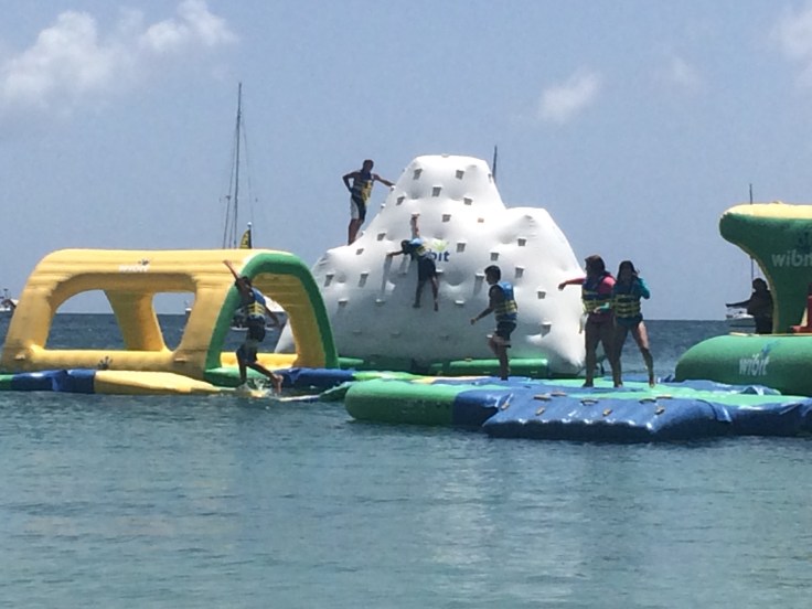 The next day was not rainy and was much nicer so we had a beach day!! There was an obstacle course set up in the water that Rich and Tyler wanted to try out. They had a lot of fun!!