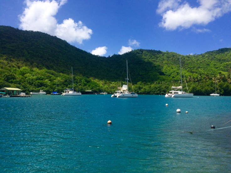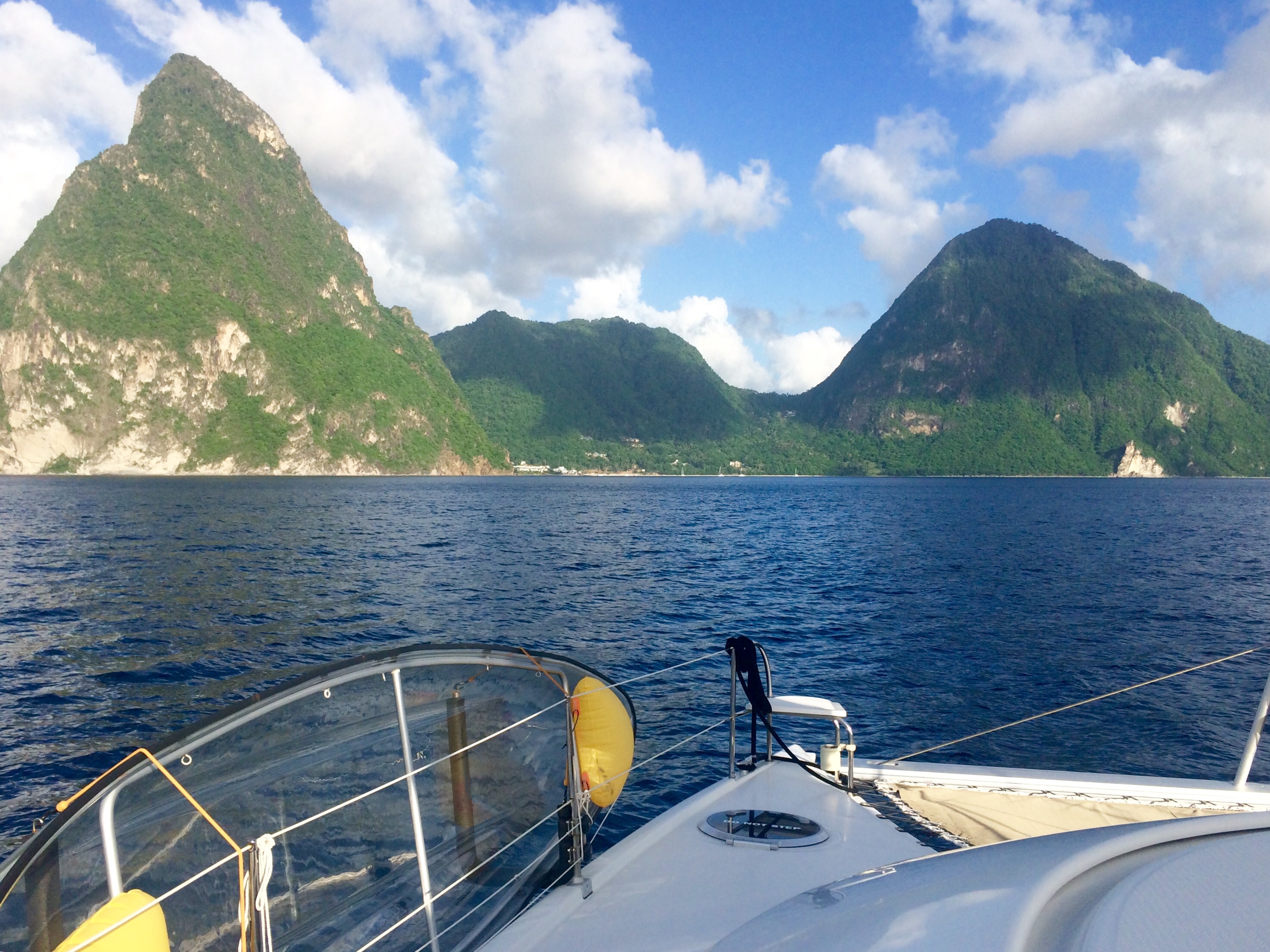 It was a beautiful day to go sailing….. SO, we sailed to the anchorage between The Piton’s.